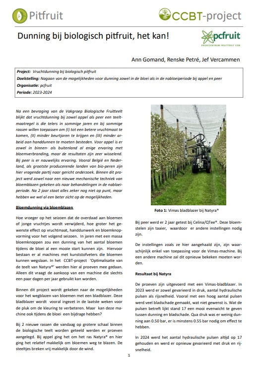 Vergelijking van verschillende types van bemesting in een biologische fruitaanplanting van Conference. Een studie van PC Fruit.