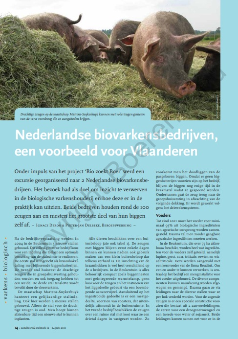 Verslag van bedrijfsbezoek aan twee biologische varkenshouders in Nederland uit 2011.